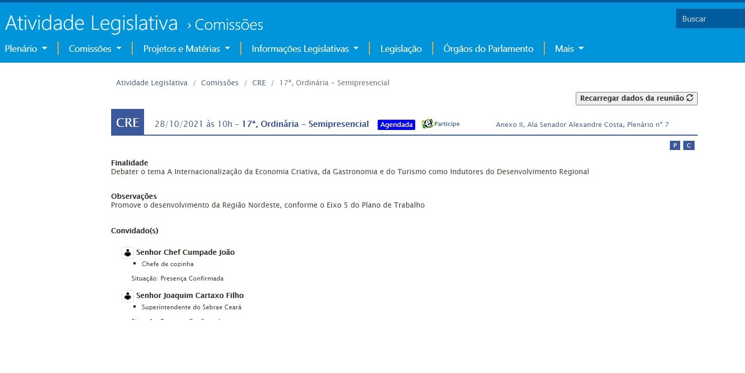 Participarão da audiência, como convidados da mesa de debate, o secretário municipal de Governança da Prefeitura de Maceió (AL), Antônio Carvalho Neto; o diretor superintendente do Sebrae no Ceará, Joaquim Cartaxo Filho; o chef de cozinha, Cumpade João; e o restaurador de obras de arte, Flávio Capitulino