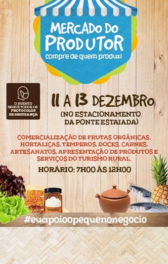 O Mercado do Produtor começa sexta-feira (11) e segue até domingo (13), no estacionamento da Ponte Estaiada, na zona leste de Teresina. No evento, serão realizadas oficinas gastronômicas de: Preparação de Antepastos; Mini-horta na sua Casa; Rabanadas Especiais para Ceia Natalina; Filetagem de Peixe; e Panetone e Pão Natalino.