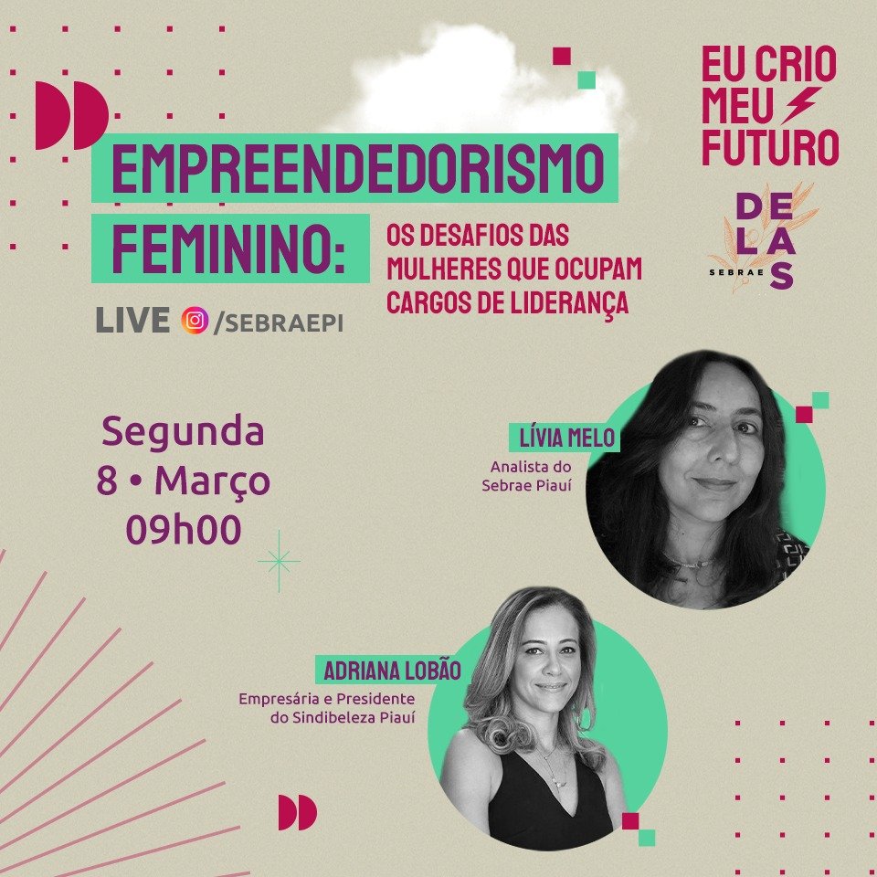 Em comemoração ao Dia Internacional da Mulher, celebrado na próxima segunda-feira, 08 de março, o Serviço de Apoio às Micro e Pequenas Empresas, Sebrae no Piauí, realizará a live Empreendedorismo Feminino: Os Desafios das Mulheres que Ocupam Cargos de Liderança. A live terá início às 09h00, sendo transmitida pelo Instagram @sebraepi.