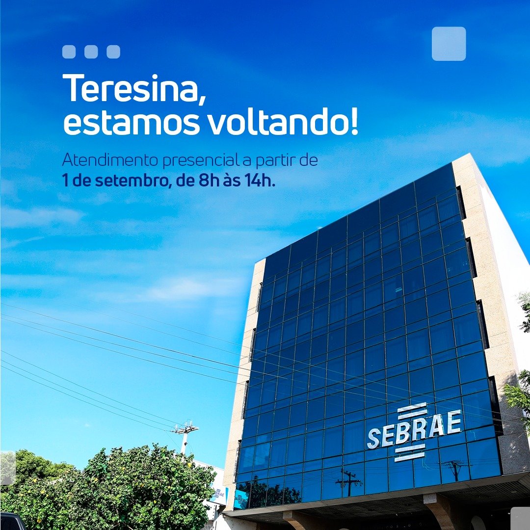 O atendimento presencial no escritório do Serviço de Apoio às Micro e Pequenas Empresas, Sebrae, em Teresina será retomado na próxima terça-feira, 1º de setembro, no horário de 08h00 às 14h00.