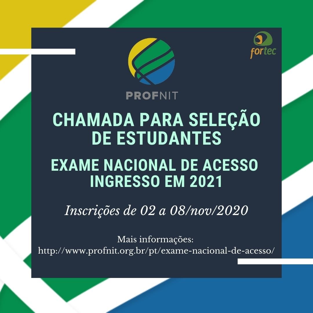 Maiores informações e inscrições no endereço eletrônico https://www.profnit.org.br/pt/exame-nacional-de-acesso/.