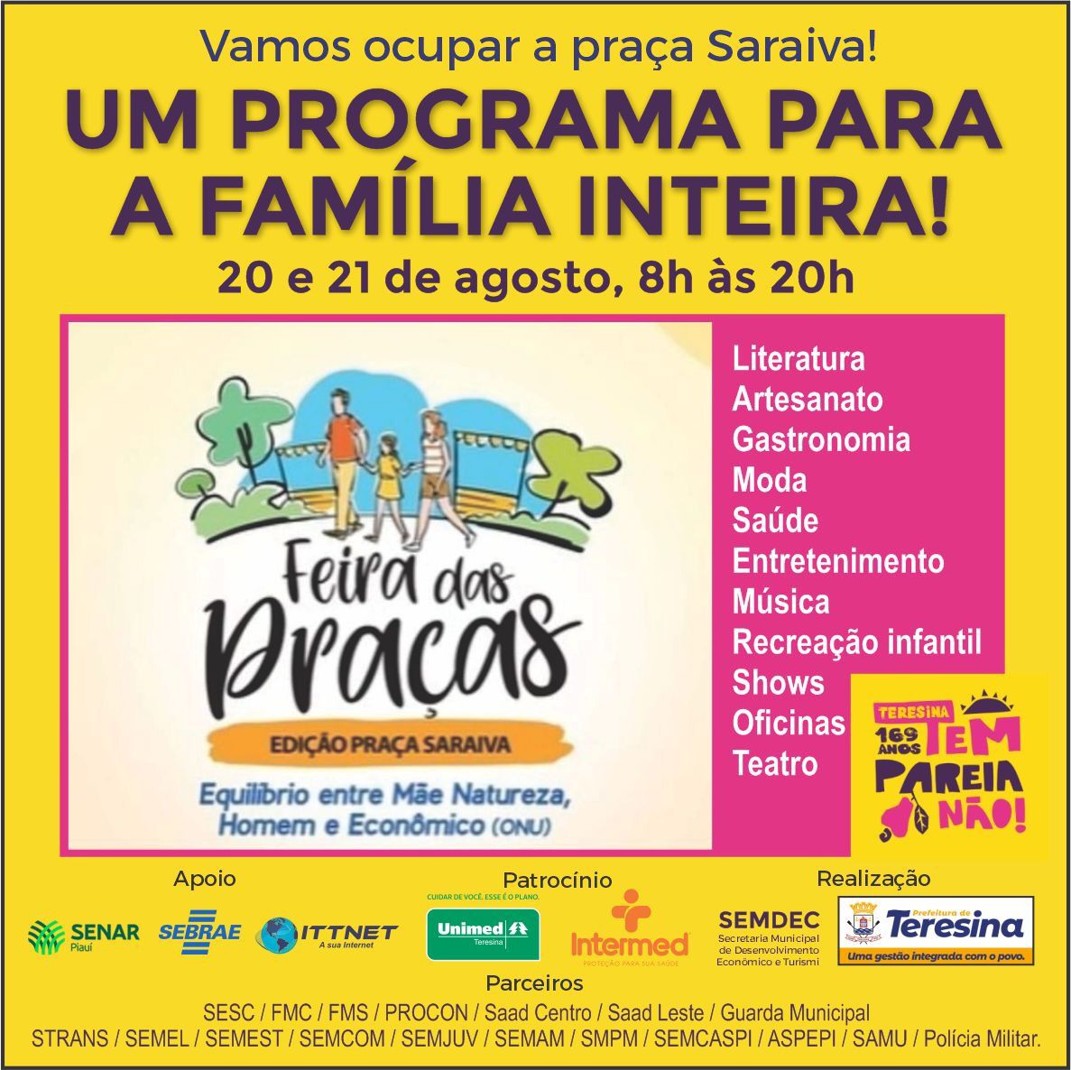 A feira, que contará com segurança da Guarda Municipal e da Polícia Militar, é uma realização da Prefeitura de Teresina, por meio da Secretaria Municipal de Desenvolvimento Econômico e Turismo (Semdec), com o apoio do Sebrae no Piauí, Senar e outras entidades e órgãos da administração municipal.