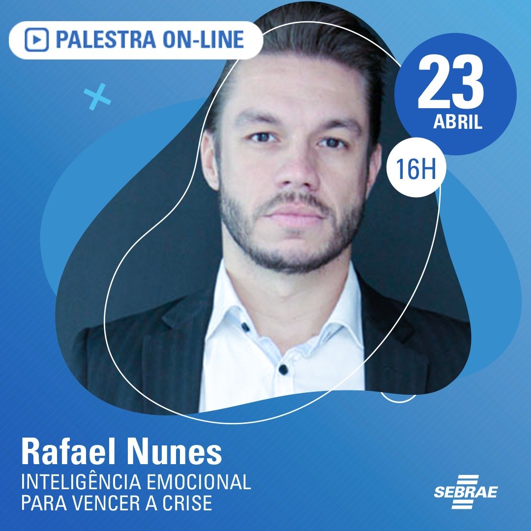 “Irei discutir sobre as habilidades emocionais que podem ser desenvolvidas para gerar resultados na nossa vida, carreira ou negócio, principalmente em momentos de crise”, pontua Rafael Nunes.