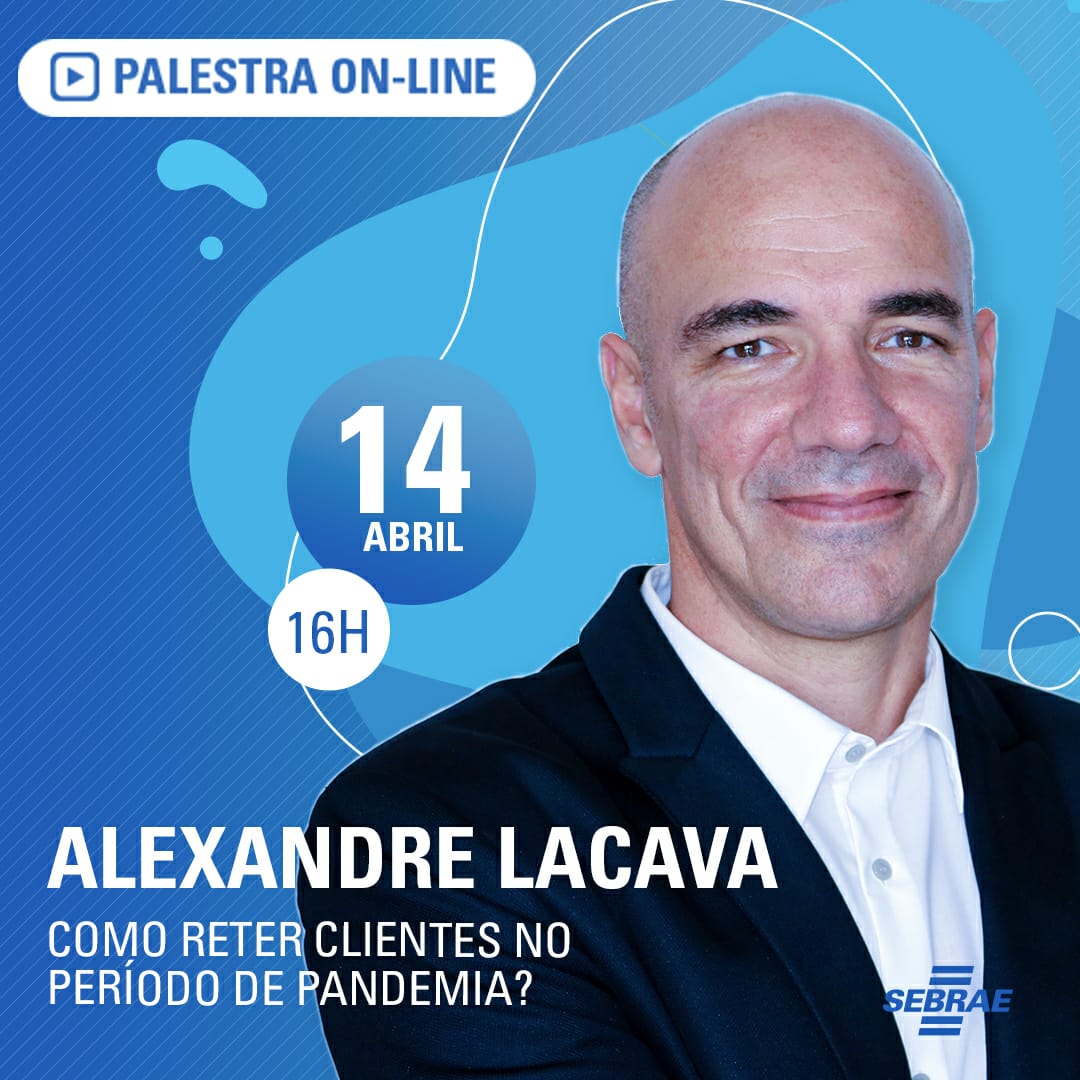 Amanhã (14), às 16h00, o especialista em Vendas, Negociação e Liderança, Alexandre Lacava, estará ao vivo na plataforma de transmissão do Sebrae no Piauí, falando sobre Como Reter Clientes no Período de Pandemia. Lacava é Practitioner em Programação Neurolinguística, coach pessoal, profissional e executivo certificado pela Sociedade Brasileira de Coach.