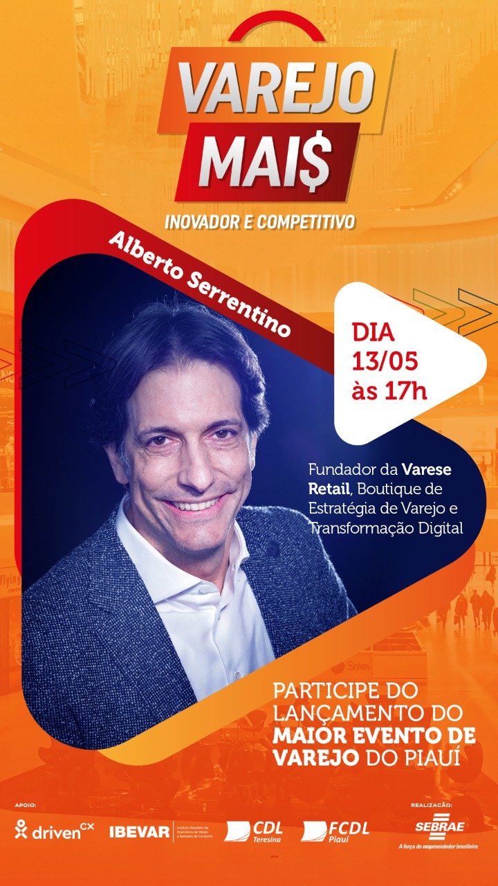 “O Varejo Mai$ é um evento pensado para alavancar os negócios varejistas do Piauí. A nossa ideia é quebrar paradigmas, criar conexões e apresentar inovações que possam impulsionar os empreendimentos desse setor e aumentar as vendas. E para fazer o lançamento desse grande evento, convidamos Alberto Serrentino, um dos maiores nomes quando se fala de varejo no mundo”, pontua o diretor superintendente do Sebrae no Piauí, Mário Lacerda.